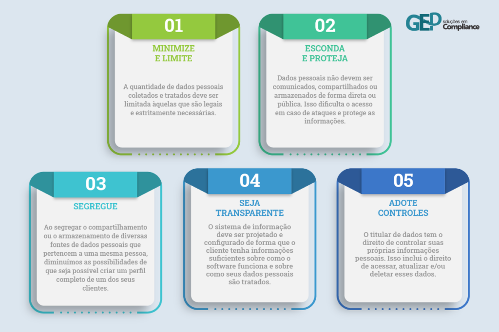 Para isso, apresentamos a seguir 5 passos essenciais para implementação do Privacy by Design, considerando as melhores práticas de mercado, bem como as recomendações contidas no Guidelines 4/21 on Article 25 – Data Protection by Design and by Default e as orientações da Autoridade Norueguesa de Proteção de Dados, Autoridade Espanhola de Proteção de Dados e da ENISA